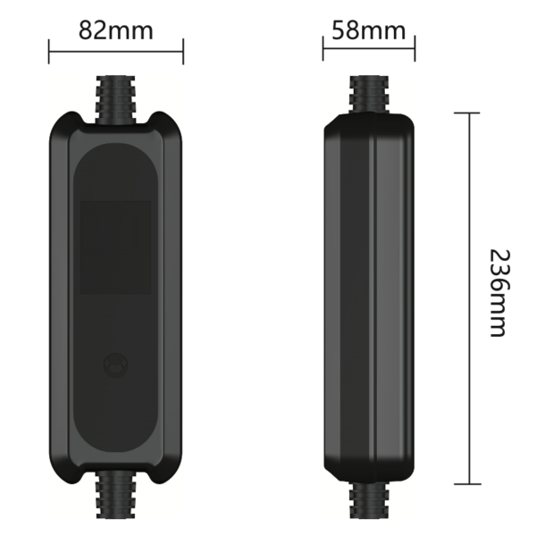 - Nødlader justerbar fra 6A til 16A, type 1 m/schuko (Mode 2), 7,5 m kabel. Dette er f.eks: Eldre Nissan Leaf, Mitsubishi…